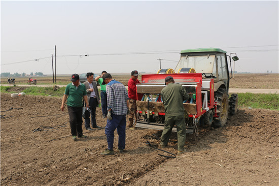 于5月19日,由洪杰副主任带队市农机推广中心技术人员来到永吉县一拉溪镇九月丰家庭农场对其引进的水稻旱直播机具及其技术进行试验、验证工作。