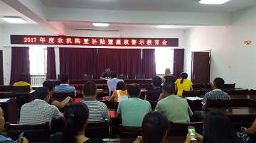 会议由主管业务副局长许明主持,会上通报了吉林省松原市骗取国家农机购置补贴腐败案,要求农机部门要认真落实补贴政策,严格按照补贴操作程序操作,严禁在补贴实施过程中吃、拿、卡、要,确保农机购置补贴这项惠农政策真正落到实处。