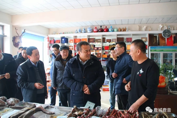 调研组一行来到鹿乡镇鹿产品一条街的长春市瑞龙鹿业有限公司参观考察,就鹿产品的种类、价格、功效等方面进行了详细了解,并听取了镇党委书记李冰对鹿乡镇梅花鹿产业发展情况的介绍。