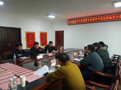 市农业局局长朱重锡将和龙市农机化开展情况向考核组作了汇报,随后,考核组通过查阅资料、现场询问等方式,详细检查了政策落实,制度规范、建立健全管理制度,监管责任落实到位情况;补贴档案管理工作;机具质量投诉、机具倒卖举报受理和处理工作;机具售后监管工作;补贴工作的组织与分工工作等情况。
