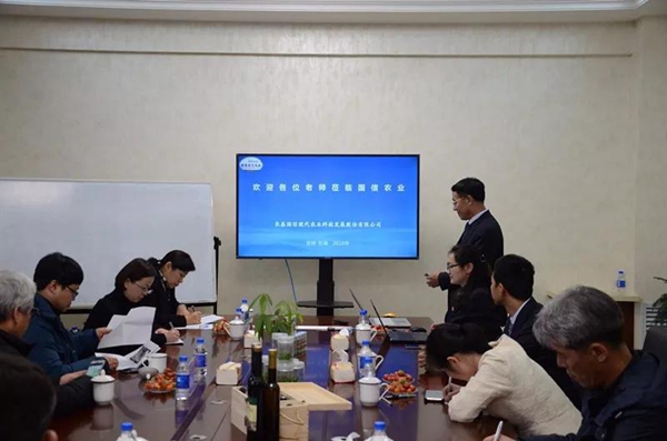 调研活动包括项目汇报及实地参观。代表团抵达基地后,首先由国信农业总经理杨柏明向代表团人员汇报国信农业发展情况,包括科研项目、教育培训、种植技术、运营模式等方面,全面地向代表团展现企业发展情况及实力。汇报会议中,汇报全面、讨论充分,相互学习、共同进步。
