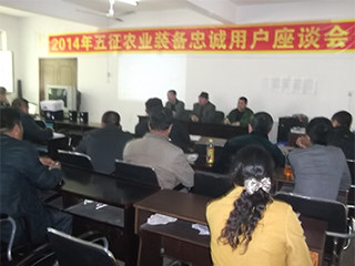 3月27日,双辽市雨丰农机汽贸有限公司与山东五征集团有限公司联合召开2014年五征农业装备忠实用户座谈会,山东五征集团有限公司农业分公司大区经理、售后服务人员、双辽雨丰公司代表及五征农业装备忠实用户代表共计50余人参加了座谈会。