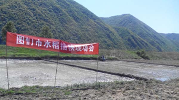 图们市于5月21日在月晴镇马牌村举办8行高光效插秧机现场会。此次进行现场演示的插秧机是图们市月晴镇晴宇农民专业合作社在今年利用国家购置补贴项目新购置的井关牌8行高光效插秧机(享受到国家补贴资金4.62万元)。市农科站站长崔永一,各镇主管农业镇长、农机站站长、农科站站长及农机经销商、水稻种植农场、种植大户参加此次现场演示会。