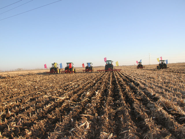 为改善农业生产条件,进一步推广普及农机深松整地作业技术,提高全区耕地质量,10月26日,洮北区在东胜乡新合村召开机械深松整地演示现场会,大力推广深松作业。东胜乡下辖21个行政村,共有耕地面积9388公顷,其中适宜深松面积9200公顷,秋季将整乡推进深松作业。 演示现场,洮北区农丰农机合作社深松作业车队10台135马力以上大型拖拉机牵引深松机开展作业,其中包括吉林省首台2054大型拖拉机,整个车队每天可作业近500公顷。经现场测试,深松深度达35厘米以上,可直接打破犁底层,每亩可提高产量100-200斤,有效地改善土壤的蓄水、保墒能力,现场演示取得了良好的效果,达到预期目的。 区农机总站站长程永航同志结合全区实际对机械深松整地的意义、好处、做法及前景做了详细讲解,农机推广技术人员就深松机、深松机等机具的机械原理、维修保养和注意事项等方面知识进行了讲授,并详细回答了农民提出的问题。各乡镇政府领导、农机站长、农机专业合作社成员及农户300余人参加了此次现场会。 今年秋季我区将推广深松整地作业面积30万亩,农机总站将扎实做好各项服务,科学安排深松作业时间,积极发挥农机合作组织作用,推动整乡整村推进深松作业。此次机械深松整地作业现场会,进一步提高了农民对深松整地技术的认识,促进了全区机械深松作业开展,为改善农业生产条件和提高粮食产量打下了坚实的基础。(祖成林)