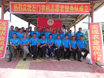 2016年7月2日,石门农机志愿者服务队在石门农机站的积极组织筹划下隆重成立。参加服务队队员主要以全镇9个行政村的农机户、种食大户、农机大户、农机合作组织负责人等。成立当天组织了丰富的活动:首先组织全体参加的农机户们对榆树川村玉米免耕播种种植现场进行参观观摩,石门农机站站长赵永强现场宣传讲解近两年来国家对免耕播种技术及补贴扶持惠农政策,随后榆树川村种粮农机大户进行了典型发言介绍,前来参加的农户们互相交流、探讨。观摩参观结束后,在榆树川村召开了石门农机便民服务群暨志愿者服务队开幕仪式,并组织了各项娱乐活动,现场气氛热烈。